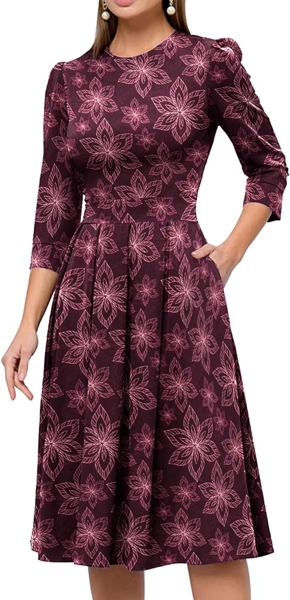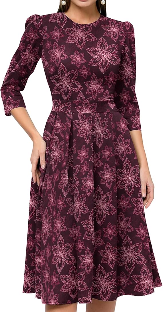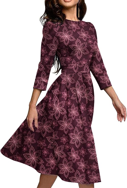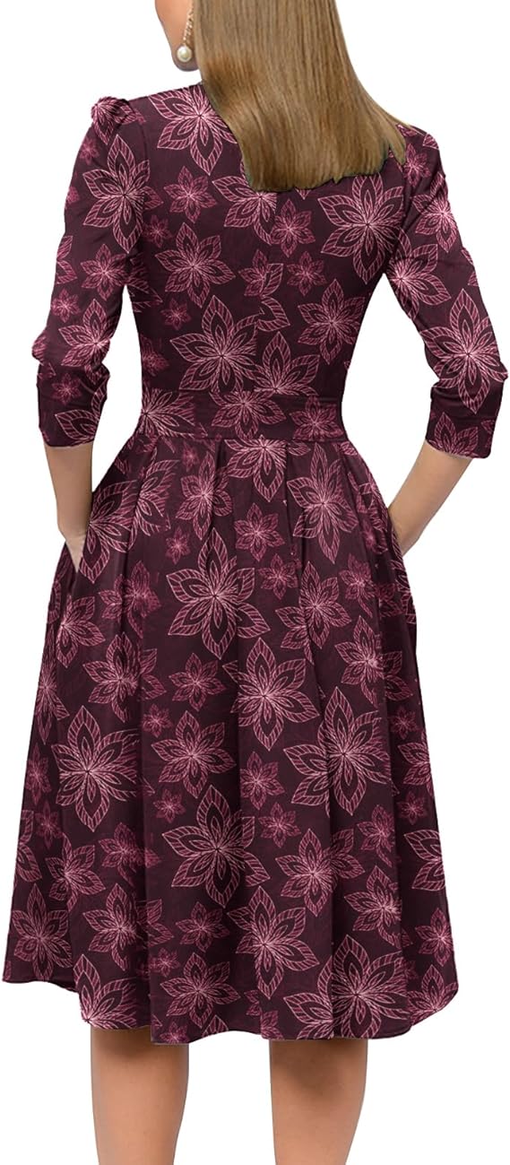 Simple Flavor Women's Floral Vintage Dress Elegant Midi Evening Dress 3/4 SleevesSimple Flavor Women’s Floral Vintage Dress Elegant Midi Evening Dress 3/4 Sleeves